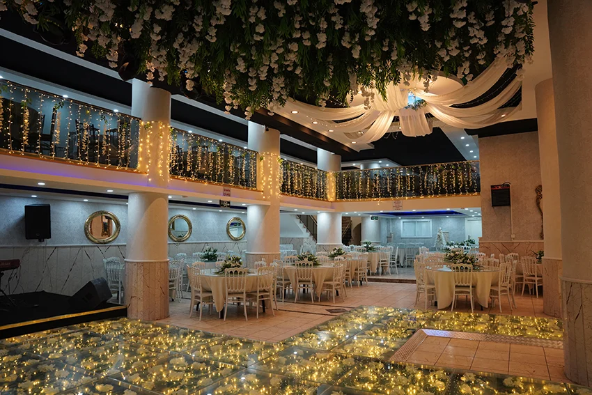 Her karede aşkın ve mutluluğun en özel anlarını yakalayacaksınız. Efsane Düğün Sarayı’nda her detay, hikayenizi ölümsüzleştirmek için tasarlandı. Işıltılı atmosferi ve zarif dekorasyonuyla hayallerinizi gerçeğe dönüştürüyoruz.