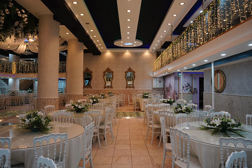 Salonumuzun her detayı zarafet ve estetik anlayışıyla tasarlandı. Davetinizde konuklarınıza unutulmaz bir görsel deneyim yaşatın.